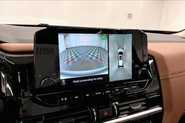 **BLACK APPEARANCE, LIGHTING, and CARGO PACKAGES with FOUR WHEEL DRIVE**, Auto High-beam Headlights, Auto tilt-away steering wheel, Auto-dimming Rear-View mirror, Black Appearance Package, Black Grille, Black Liftgate Emblems, Bodyside moldings, Bose Premium Audio System, Cargo Area Protector, Cargo Net, Cargo Package, Dash Cam - Dual Camera Drive Recorder, Emergency communication system, Exterior Parking Camera Rear, First Aid, Front dual zone A/C, Garage door transmitter: HomeLink, Heads-Up Display, Heated and Cooled Front Seats, Heated door mirrors, Heated rear seats, Heated steering wheel, Illuminated entry, Illuminated Kick Plate, Leather steering wheel, LED Fog Lamps, Memory Driver Seat, Navigation system: NissanConnect with Navigation and Services, Nissan USB Charging Cable Set, NissanConnect featuring Apple CarPlay and Android Auto, Power driver seat, Power Liftgate, Power moonroof, Rain sensing wipers, Rear air conditioning, Reclining 3rd row seat, Remote keyless entry, Running Boards, Semi-Aniline Leather-Appointed Seating Surfaces, Sirius XM Radio, Steering wheel memory, Steering wheel mounted audio controls, Turn signal indicator mirrors, Welcome Lighting, Wheels: 20 x 8J Machined Alloy. 2025 Nissan Pathfinder Platinum