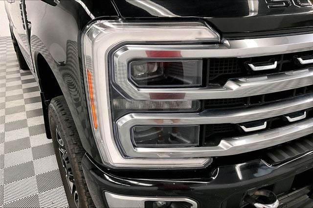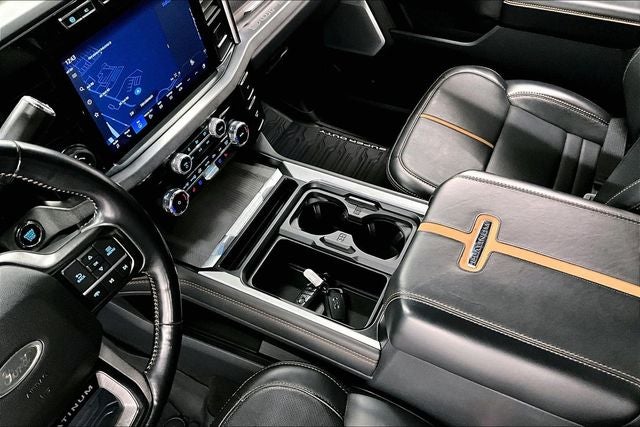 ZERO ACCIDENTS, Turbodiesel, Four Wheel Drive, 3.31 Axle Ratio, 5th Wheel/Gooseneck Hitch Prep Package, ABS brakes, Adjustable pedals, Alloy wheels, AM/FM radio: SiriusXM with 360L, Auto High-beam Headlights, Auto-dimming Rear-View mirror, Automatic temperature control, BLIS w/Cross-Traffic Alert, Compass, Delay-off headlights, Electronic Stability Control, Exterior Parking Camera Rear, Flow-Through Console, Front Bucket Seats, Front Center Armrest, Front dual zone A/C, Front fog lights, Fully automatic headlights, Heated door mirrors, Heated front seats, Heated rear seats, Illuminated entry, Intelligent Adaptive Cruise Control w/Stop-and-Go, Low tire pressure warning, Memory Driver Seat, Navigation system: Connected Navigation, Order Code 703A, Panic alarm, Pedal memory, Power door mirrors, Power driver seat, Power passenger seat, Power steering, Power windows, Radio: B&O Sound System by Bang & Olufsen, Rain sensing wipers, Rapid-Heat Supplemental Cab Heater, Rear window defroster, Remote keyless entry, Split folding rear seat, Steering wheel memory, Steering wheel mounted audio controls, SYNC 4 w/Enhanced Voice Recognition, Telescoping steering wheel, Tilt steering wheel, Traction control, Twin Panel Power Moonroof, Unique Platinum Leather 40/Console/40 Seats, Variably intermittent wipers, Ventilated front seats, Wheels: 20 Chrome PVD Aluminum. Priced below KBB Fair Purchase Price! Odometer is 19650 miles below market average! Agate Black Metallic 2023 Ford F-250SD Platinum 4WD 10-Speed Automatic