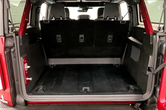 ONE OWNER with ZERO ACCIDENTS, Four Wheel Drive, Bronco Badlands, 4D Sport Utility, 4WD, Ruby Red Metallic, 2-Door Intelligent Access w/Lock/Unlock, 4.46 Axle Ratio, ABS brakes, Air Conditioning, AM/FM radio: SiriusXM with 360L, Ambient Footwell Lighting, Auto High-beam Headlights, Auto-dimming Rear-View mirror, BLIS Blind Spot Information System, Connected Navigation, Delay-off headlights, Dr & Pass Illuminated Sliding Visor Vanity Mirrors, Dual Smart Charging USB Ports, Dual-Zone Electronic Automatic Temperature Control, Equipment Group 332A Mid Package, Front Bucket Seats, Front Center Armrest, Front fog lights, Front Row Heated Seats, Fully automatic headlights, Heated door mirrors, Heated steering wheel, Illuminated entry, Low tire pressure warning, Marine Grade Vinyl Heated Bucket Seats, Panic alarm, Power door mirrors, Power Outlet - Back Side of Center Floor Console, Power steering, Power windows, Radio data system, Rear Parking Sensors, Rear-View Camera, Rear-Window Defroster & Washer, Remote keyless entry, Remote Start System, SiriusXM w/360L, Speed control, Split folding rear seat, Steering wheel mounted audio controls, SYNC 4, Telescoping steering wheel, Tilt steering wheel, Traction control, Variably intermittent wipers, Wheels: 17 Carbonized Gray-Painted Aluminum. Ruby Red Metallic 2025 Ford Bronco Badlands 4WD 10-Speed Automatic