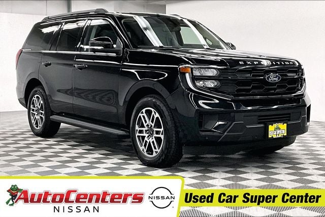ONE OWNER with ZERO ACCIDENTS, Four Wheel Drive, Expedition Active, 4D Sport Utility, 4WD, Agate Black Metallic, 110V/400W AC Power Outlet, 2nd Row Power-Folding Captain's Chairs, 3.73 Axle Ratio, 360-Degree Zone Lighting, 3rd Row Flexible Seating, 3rd Row Vinyl Seats, 4-Door Intelligent Access (Lock/Unlock), ABS brakes, ActiveX Front Heated Captain's Chairs, AM/FM radio: SiriusXM with 360L, Apple CarPlay/Android Auto, Auto High-beam Headlights, Automatic temperature control, BlueCruise Equipped, Bumpers: body-color, Delay-off headlights, Equipment Group 202A High Package, Exterior Parking Camera Rear, Flex Powered Console, Ford Split Gate, Front Bucket Seats, Front Center Armrest, Front dual zone A/C, Front Side Laminated Glass, Fully automatic headlights, Heated door mirrors, Heated Steering Wheel, Heavy-Duty Trailer Tow, Intersection Assist, Low tire pressure warning, Memory Driver Seat, Panic alarm, Power door mirrors, Power driver seat, Power Panoramic Vista Roof w/Power Sunshade, Power passenger seat, Power steering, Power Tilt/Telescopic Steering Wheel w/Memory, Power windows, Power-Folding Sideview Mirrors w/Autofold, Radio data system, Radio: AM/FM Stereo w/MP3 Capable, Rain Sensing Wipers, Rear air conditioning, Rear window defroster, Rear window wiper, Reclining 3rd row seat, Remote keyless entry, SecuriCode Keyless Entry Pad, Speed control, Speed-Sensitive Wipers, Split folding rear seat, Steering wheel mounted audio controls, Telescoping steering wheel, Tilt steering wheel, Traction control, Universal Garage Door Opener, USB Ports, Variably intermittent wipers, Wheels: 20 Carbonized Gray Bright Machined Aluminum, Wireless Charging Pad. Recent Arrival! Agate Black Metallic 2025 Ford Expedition Active 4WD 10-Speed Automatic