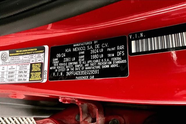 ONE OWNER with ZERO ACCIDENTS, K4 EX, 4D Sedan, Currant Red, 6 Speakers, ABS brakes, Active Cruise Control, Apple CarPlay & Android Auto, Auto High-beam Headlights, Automatic temperature control, Bumpers: body-color, Delay-off headlights, Front Bucket Seats, Front Center Armrest, Front dual zone A/C, Fully automatic headlights, Heated door mirrors, Illuminated entry, Low tire pressure warning, Panic alarm, Power door mirrors, Power steering, Power windows, Radio data system, Radio: 12.3 Touchscreen Audio Display, Rear window defroster, Remote keyless entry, Sirius XM Radio, Split folding rear seat, Steering wheel mounted audio controls, Telescoping steering wheel, Tilt steering wheel, Traction control, Variably intermittent wipers, Wheels: 17 x 7.0J Black Machined Alloy. 29/39 City/Highway MPG Currant Red 2025 Kia K4 EX FWD CVT