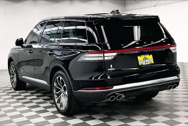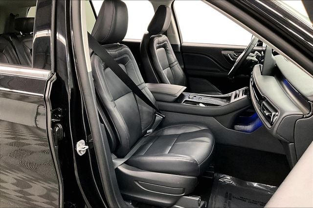ZERO ACCIDENTS, All Wheel Drive, Aviator Reserve, 4D Sport Utility, AWD, Infinite Black Metallic Clearcoat, 3rd row seats: split-bench, 40/Mini Console/40 Dual Captain's Chairs, ABS brakes, Active Cruise Control, Adaptive Dynamic Bending Lighting, Adaptive Pixel LED Headlamps, Advanced Heads-Up Display, Apple CarPlay/Android Auto, Audio memory, Auto Air Refresh, Auto High-beam Headlights, Auto-dimming door mirrors, Automatic temperature control, Delay-off headlights, Equipment Group 200A, Front Bucket Seats, Front Center Armrest, Front dual zone A/C, Fully automatic headlights, Heads-Up Display, Heated door mirrors, Heated front seats, Heated steering wheel, Illuminated entry, Illuminated Lincoln Star in Grille, Illumination Package, Lincoln Digital Experience, Lincoln Dynamic Signature Lighting, Low tire pressure warning, Memory Driver Seat, Panic alarm, Power door mirrors, Power driver seat, Power Liftgate, Power moonroof: Panoramic Vista Roof, Power passenger seat, Power steering, Power windows, Radio data system, Radio: Revel Audio System w/14 Speakers, Rain sensing wipers, Rear audio controls, Rear dual zone A/C, Rear window wiper, Remote keyless entry, SiriusXM, Speed Dependent Lighting, Speed-Sensitive Wipers, Split folding rear seat, Steering wheel memory, Steering wheel mounted A/C controls, Steering wheel mounted audio controls, Telescoping steering wheel, Tilt steering wheel, Traction control, Turn signal indicator mirrors, Variably intermittent wipers, Ventilated front seats, Wheels: 21 Bright-Machined Aluminum, Wireless Charging Pad. Odometer is 11585 miles below market average! Infinite Black Metallic Clearcoat 2025 Lincoln Aviator Reserve AWD 10-Speed Automatic