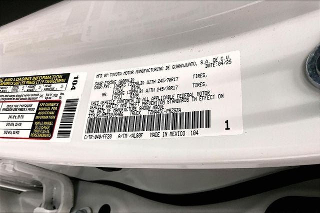 ONE OWNER with ZERO ACCIDENTS, Four Wheel Drive, Factory 2.5'' Lift & Suspension Kit, Tacoma SR5 4x4 - Adaptive Cruise - Blind Spot Detection, 4D Double Cab, 4WD, Ice Cap, 3.583 Axle Ratio, 6 Speakers, ABS brakes, Air Conditioning, Apple CarPlay/Android Auto, Auto High-beam Headlights, Bumpers: body-color, Exterior Parking Camera Rear, Fabric Seat Trim, Front Bucket Seats, Front Center Armrest, Front fog lights, Fully automatic headlights, Heated door mirrors, Illuminated entry, Low tire pressure warning, Panic alarm, Power door mirrors, Power steering, Power windows, Radio: 8 Toyota Audio Multimedia, Rear window defroster, Remote keyless entry, Sirius XM Radio, Speed control, Split folding rear seat, Steering wheel mounted audio controls, Telescoping steering wheel, Tilt steering wheel, Traction control, Variably intermittent wipers, Wheels: 17 Styled Alloy. Odometer is 3077 miles below market average! Ice Cap 2025 Toyota Tacoma SR5 4x4 - Adaptive Cruise - Blind Spot Detection 4WD 8-Speed Automatic