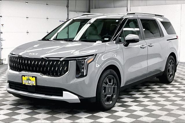 ONE OWNER with ZERO ACCIDENTS, 3rd Row Seating, 2nd Row Bench Seat, Carnival Hybrid EX Adaptive Cruise - Htd Seats - Blind Spot Detection, 4D Passenger Van, Ceramic Silver, 8 Speakers, ABS brakes, Active Cruise Control, Apple CarPlay & Android Auto, Artificial Leather Seat Trim, Auto High-beam Headlights, Automatic temperature control, Bumpers: body-color, Delay-off headlights, Exterior Parking Camera Rear, Front Center Armrest, Front dual zone A/C, Fully automatic headlights, Heated door mirrors, Heated Front Bucket Seats, Illuminated entry, Low tire pressure warning, Memory Driver Seat, Navigation System, Panic alarm, Power door mirrors, Power driver seat, Power Liftgate, Power passenger seat, Power steering, Power windows, Radio: : Navigation System with SiriusXM, Rear air conditioning, Rear window defroster, Rear window wiper, Reclining 3rd row seat, Remote keyless entry, Sirius XM Radio, Split folding rear seat, Steering wheel mounted audio controls, Telescoping steering wheel, Tilt steering wheel, Traction control, Turn signal indicator mirrors, Variably intermittent wipers, Wheels: 19 Black Alloy. 34/31 City/Highway MPG Odometer is 1048 miles below market average! Ceramic Silver 2026 Kia Carnival Hybrid EX Adaptive Cruise - Htd Seats - Blind Spot Detection FWD 6-Speed Automatic