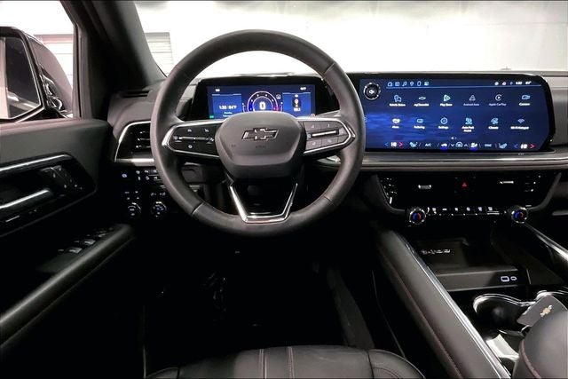 ZERO ACCIDENTS, Four Wheel Drive, Tahoe RST 4x4 - Pano Roof - Adaptive Cruise - Htd Leather, 4D Sport Utility, 4WD, Black, 2-Speed Active Electronic AutoTrac Transfer Case, 2-Way Power Driver Lumbar Seat Adjuster, 2-Way Power Front Passenger Lumbar Seat Adjuster, 2nd Row Power Release 60/40 Split-Folding Bench Seat, 3-Spoke Wrapped Steering Wheel, 3.23 Rear Axle Ratio, 3rd Row 60/40 Power-Folding Split-Bench Seat, 3rd Row Manual 60/40 Split-Folding Bench Seats, 8-Way Power Driver Seat Adjuster, 8-Way Power Front Passenger Seat Adjuster, ABS brakes, Advanced Trailering Package, Air Ride Adaptive Suspension, Apple CarPlay/Android Auto, Auto High-beam Headlights, Auto-Dimming Inside Rear-View Mirror, Automatic temperature control, Bose 10-Speaker Centerpoint Surround Audio System Feature, Bright Front and Rear Door Sill Plates, Bumpers: body-color, Color-Keyed Carpeting Floor Covering, Comfort Package, Delay-off headlights, Dual Exhaust System, Dual-Pane Power Panoramic Sunroof, Exterior Parking Camera Rear, Floor Console, Floor Console with Storage Area, Front Bucket Seats, Front Center Armrest, Front dual zone A/C, Front fog lights, Front LED Fog Lamps, Front Pedestrian and Bicyclist Braking, Frontal Driver and Outboard Passenger Airbags, Fully automatic headlights, Heated 2nd Row Outboard Seats, Heated Driver and Front Passenger Seats, Heated Steering Wheel, Hill Descent Control, Illuminated entry, Integrated Trailer Brake Controller, LED Headlamps with LED Daytime Running Lamps, LED Tail Lamps, Low tire pressure warning, Magnetic Ride Control Suspension, Max Trailering Package, Memory Settings, Memory Settings For Driver, Navigation system: Google built-in compatibility (select service plan required, terms and limitations apply), Outside Heated Power-Adjustable Mirrors, Panic alarm, Perforated Leather Seat Trim, Power passenger seat, Power steering, Power windows, Preferred Equipment Group 1SP, Radio: 17.7 Diagonal Advanced Color LCD Display, Rain sensing wipers, Rear air conditioning, Rear Power Liftgate, Rear window defroster, Rear window wiper, Remote keyless entry, Remote Start, RST Capability Package, RST Exterior Features, SiriusXM with 360L Trial Subscription, Speed control, Steering wheel mounted audio controls, Telescoping steering wheel, Tilt steering wheel, Traction control, Universal Home Remote, USB Ports, Variably intermittent wipers, Wheels: 22 x 9 Bright Machined, Wireless Phone Charging. Black 2025 Chevrolet Tahoe RST 4x4 - Pano Roof - Adaptive Cruise - Htd Leather 4WD 10-Speed Automatic with Overdrive