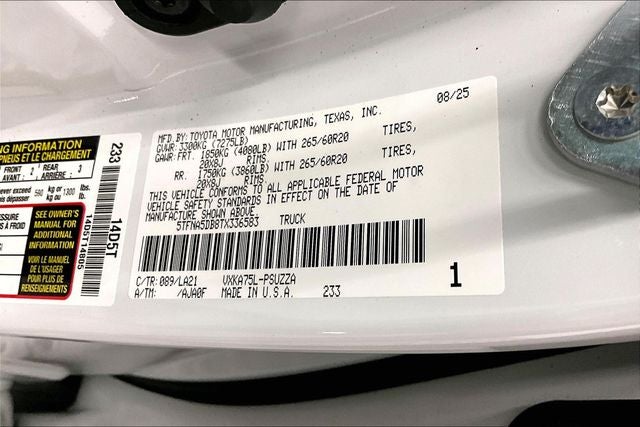 ONE OWNER with ZERO ACCIDENTS, Four Wheel Drive, Tundra Platinum, 4D CrewMax, 4WD, Wind Chill Pearl, 10-Way Power Adjustable Heated and Ventilated Front Seats, 12 Speakers, 3.31 Axle Ratio, ABS brakes, Active Cruise Control, Apple CarPlay/Android Auto, Auto High-beam Headlights, Auto-dimming door mirrors, Automatic temperature control, Bumpers: body-color, Delay-off headlights, Exterior Parking Camera Rear, Front Bucket Seats, Front Center Armrest, Front dual zone A/C, Front fog lights, Fully automatic headlights, Garage door transmitter: HomeLink, Heated door mirrors, Heated front seats, Heated rear seats, Heated steering wheel, Illuminated entry, Low tire pressure warning, Memory Driver Seat, Navigation system: Drive Connect Cloud Navigation (1-year trial subscription), Panic alarm, Power door mirrors, Power driver seat, Power moonroof, Power passenger seat, Power steering, Power windows, Premium Leather Seat Trim, Radio data system, Radio: Premium Audio, Rain sensing wipers, Rear window defroster, Remote keyless entry, Safety Connect, Sirius XM Radio, Speed-Sensitive Wipers, Split folding rear seat, Steering wheel memory, Steering wheel mounted audio controls, Telescoping steering wheel, Tilt steering wheel, Traction control, Turn signal indicator mirrors, Variably intermittent wipers, Ventilated front seats, Ventilated rear seats, Wheels: 20 Dark Painted Alloy. Wind Chill Pearl 2026 Toyota Tundra Platinum 4WD 10-Speed Automatic