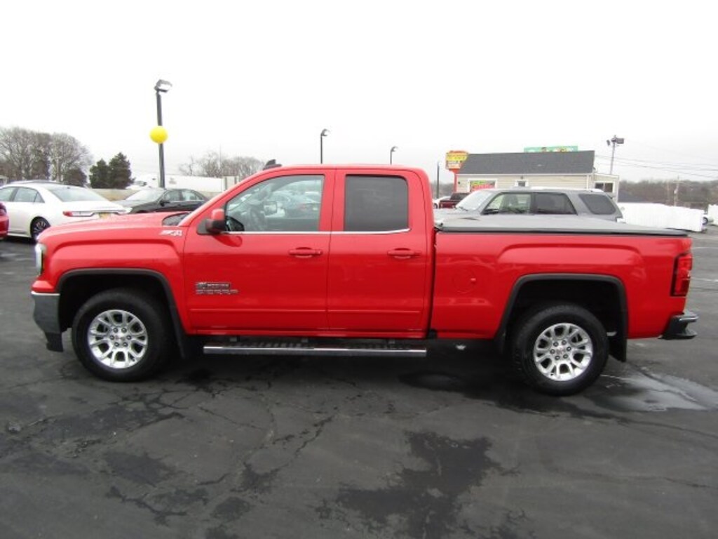 Priced below KBB Fair Purchase Price! ONE OWNER, ZERO ACCIDENTS, 6 Speakers, Bed Liner, Brake assist, Electric Rear-Window Defogger, Navigation System, Power Adjustable Pedals, Power Sliding Rear Window w/Defogger, SLE Convenience Package, Ultrasonic Rear Park Assist, Wheels: 17" x 8" Bright Machined Aluminum. Odometer is 26792 miles below market average! Cardinal Red 2017 GMC Sierra 1500 SLE 4WD 6-Speed Automatic Electronic with Overdrive V8