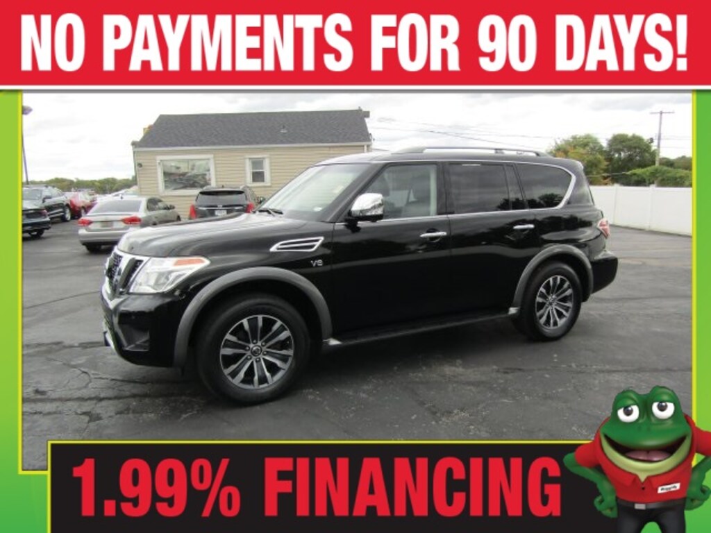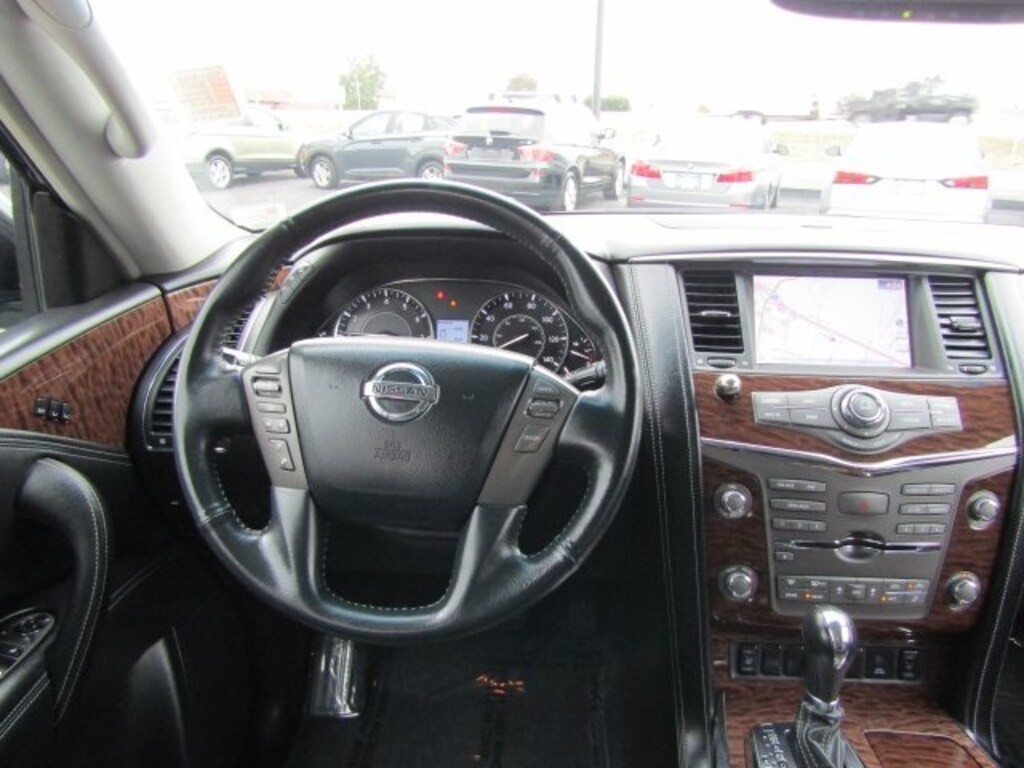 Priced below KBB Fair Purchase Price! Air Conditioning, Alloy wheels, Brake assist, Dual front impact airbags, Dual front side impact airbags, Electronic Stability Control, Front dual zone A/C, Front fog lights, Heated door mirrors, Heated front seats, Navigation System, Panic alarm, Power Liftgate, Radio: Bose AM/FM/SXM/CD/MP3 Audio System, Reclining 3rd row seat, Roof Rack, Satellite Radio, Security system, Speed control, Split folding rear seat, Turn signal indicator mirrors. Super Black 2017 Nissan Armada SL AWD 7-Speed Automatic 5.6L V8 DOHC 32V Endurance